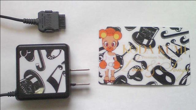 ケータイの充電器をバースデーライブの絵柄にしました(^O^)バースデーライブグッズのペンライトのパッケージを使用しています(^^)写真右はカードのサイズに切ったステッカーです(^^)どちらもパッケージのカラーコピーを両面テープで貼って表面に透明なフィルムを貼ってあります(^O^)