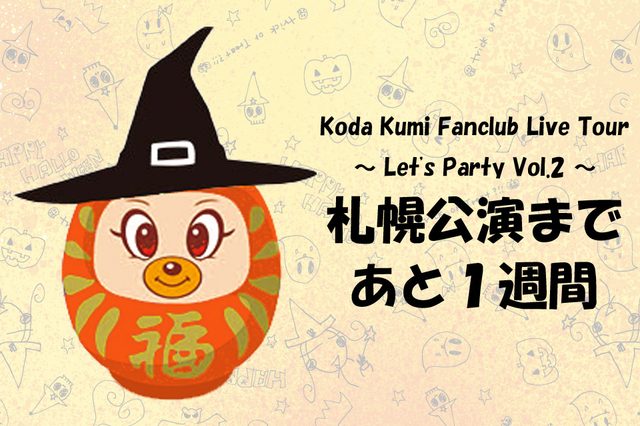 「KODA KUMI FANCLUB LIVE TOUR ーLet's Party Vol.2ー」11/2(土)Zepp Sapporo公演まであと1週間になりました(^^)いよいよ明日からツアーが始まります(^0^)/ツアーグッズも発表されたので、どれを買おうか迷い中です(^^)今までのライブDVDをもう一度見直してからライブに挑みたいと思います(^^)今回のライブDVD収録はやっぱり大阪になるんですかね〜(^^)札幌公演のアンコールサプライズ曲は、なんの曲になるんですか?(^^)