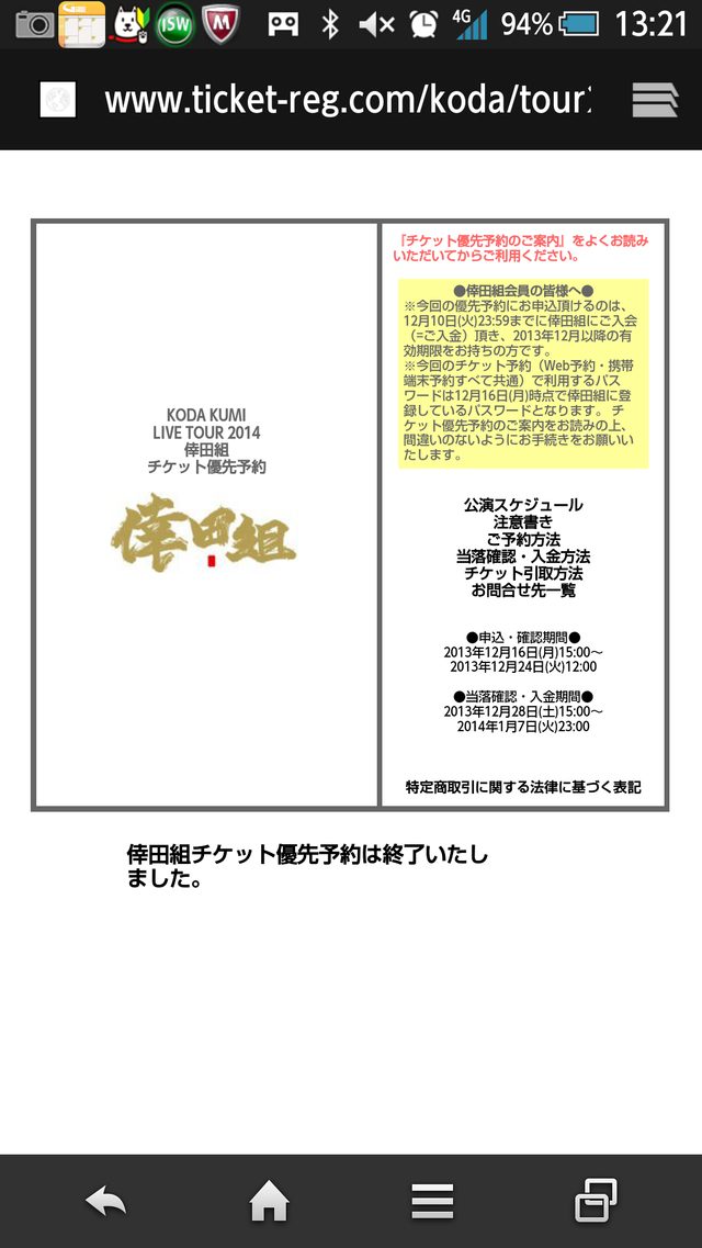 来年のホールツアーの倖田組チケット先行抽選予約の当落発表まであと93分(^^)
