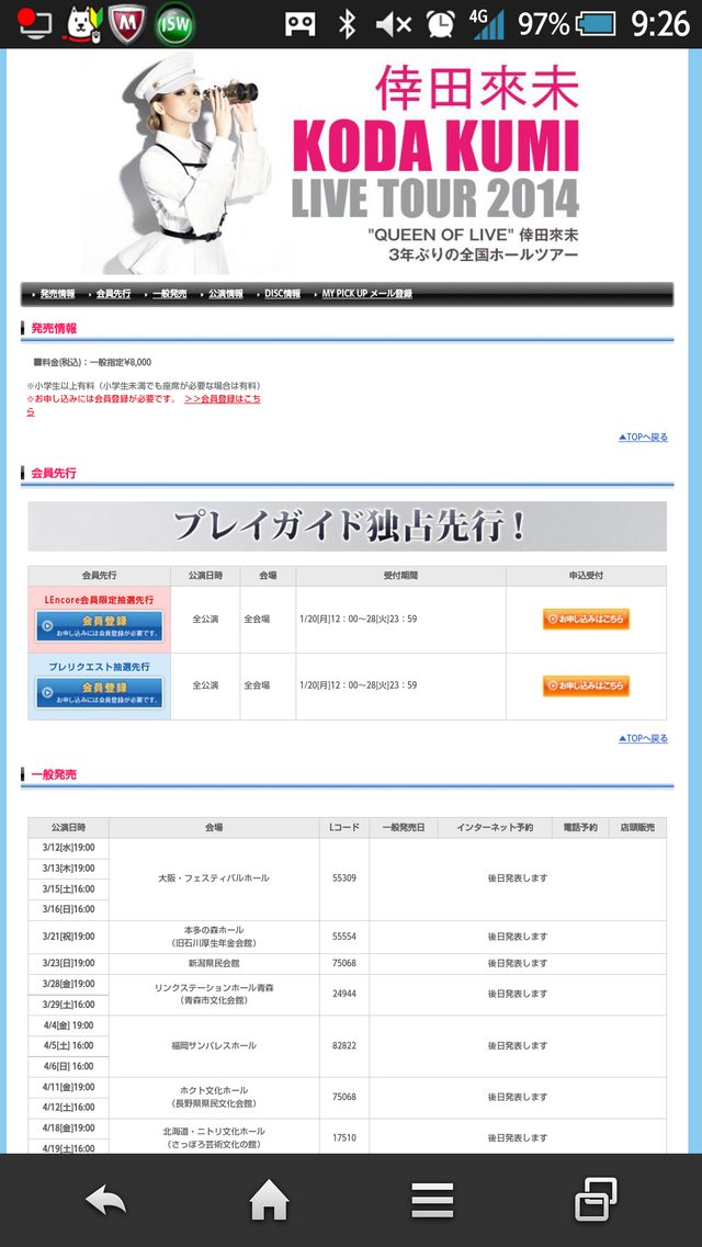 「ローソンチケット」ホールツアーチケット情報(^^)