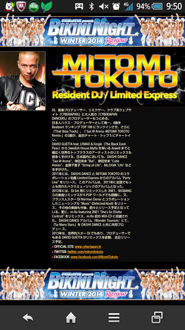 Driving Hit'sシリーズでBUTやキューティーハニーのリミックスを担当したDJ「MITOMI TOKOTO」のクラブツアーが開催中です(^o^)02月15日(土)@ ageHa Island02月22日(土)@ CAMELOT 渋谷03月01日(土)@ AZM 山梨03月14日(金)@ a-life 札幌03月21日(金)@ WORLD 京都03月28日(金)@ ONZIEME 大阪03月29日(土)@ ageHa ARENA